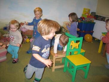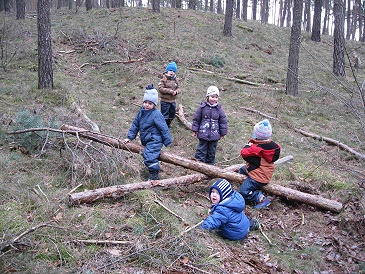 Wippen im Wald, selbstgebaute Spielzeuge sind besonders beliebt. |