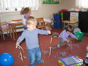 Marten hat Geburtstag, beim Luftschlangentanz sind alle voll in Aktion.